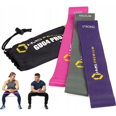 Súprava fitness gúm HMS GU04 Súprava 4 odolných posilňovacích odporových gúm typu „mini loop” alebo tiež „miniband” pre silový a kondičný tréning, s ktorými jednoducho a...